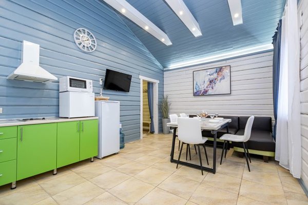 Для проживания доступны дома различной вместимости. Гостевой дом включает в себя баню на первом этаже, полностью оборудованную кухню-гостиную со теплыми полами (с музыкальной системой, караоке и спутниковым телевидением) и уютные номера на втором этаже.