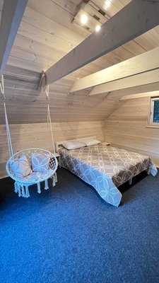 Это одноэтажный уютный и просторный дом с несколькими двуспальными кроватями. Все подушки и одеяла гипоаллергенные, а постельное белье изготовлено из 100% хлопка. Кухня оснащена электрической плитой, холодильником с морозильной камерой и всей необходимой посудой, включая кастрюли, сковородки и принадлежности для приготовления пищи. В ванной комнате есть душевая кабина, туалет, горячая вода, фен, полотенца и туалетные принадлежности. В доме также есть гардеробная, вешалки для одежды, два стола — большой и маленький, табуретки и кресла.