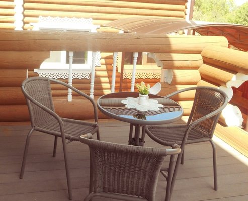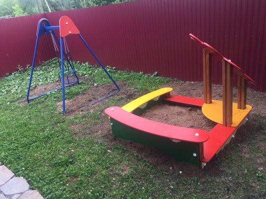 На территории "Усадьбы" есть бесплатная парковка, русская баня на дровах с бассейном, мангал, чтоб приготовить блюда на свежем воздухе, а для деток игровая площадка с качелями и песочницей.