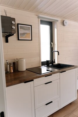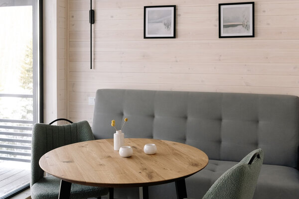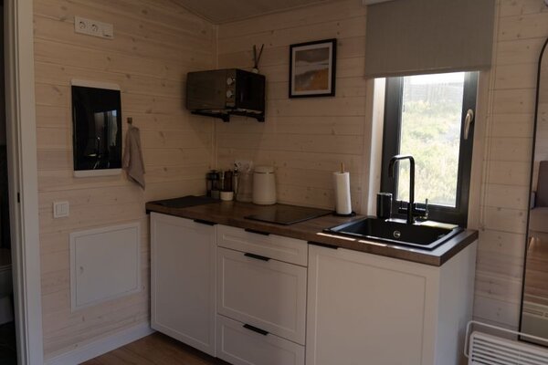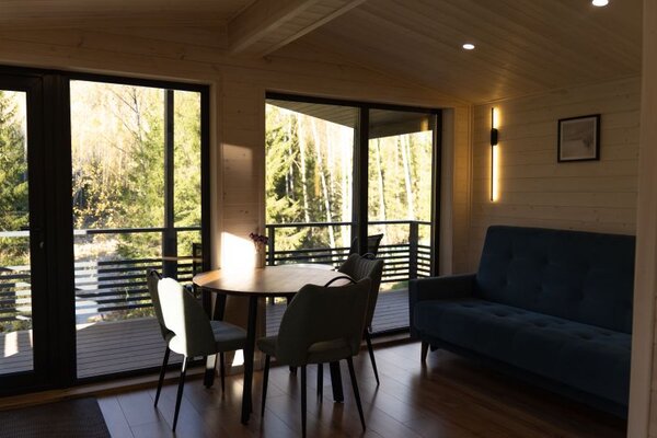 Для Вашего удобства каждый домик оборудован полностью укомплектованной кухней и уютной обеденной зоной с большим круглым столом, где можно собраться за семейным ужином. Теплые полы и конвекторные обогреватели обеспечат комфортную атмосферу в любую погоду.