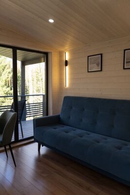 Наши современные домики, наполненные естественным светом, предлагают захватывающие панорамные виды на леса и горы через впечатляющие окна. Террасы станут идеальной площадкой для любования закатами.