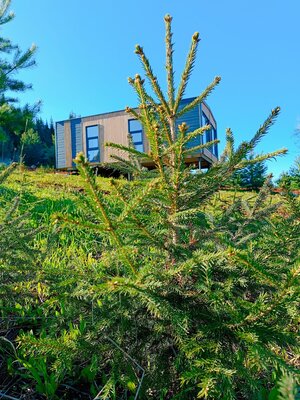Домик находится на вершине горы, откуда открывается потрясающий вид. Участок граничит с хвойным лесом, а в пяти минутах ходьбы — пруд. Здесь вы сможете забыть о городской суете, насладиться тишиной, покоем и природой, а также быть ближе друг к другу, наполнившись гармонией и сохранением драгоценных моментов тихого счастья.
