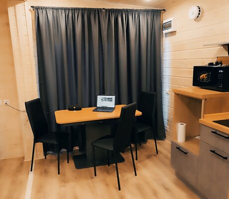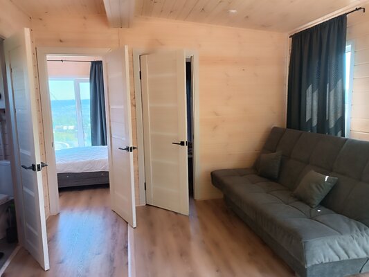 Уютный домик с двумя отдельными спальнями и просторной кухней-гостиной рассчитан на 6 человек. В нем есть всё необходимое для комфортного отдыха: