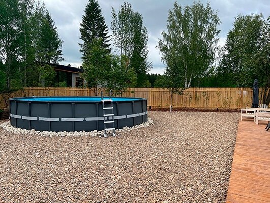 Для расслабленного времяпровождения под открытым небом на территории базы оборудован плавательный бассейн с уютной зоной отдыха.