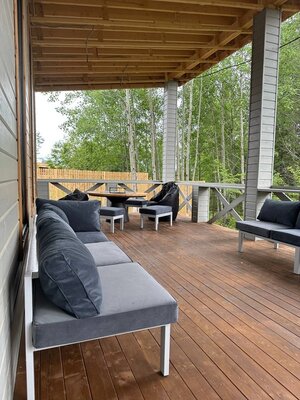 Проведите свое мероприятие в теплой уютной беседке вместимостью 40 человек. Здесь вы можете отметить День Рождения, корпоратив, свадьбу, невторкинг, мастер-классы и другие мероприятия. Вы можете размеситься в беседке, не бронируя дом. В беседке есть кухня с холодильником, санузел, а также мангальная зона на террасе.