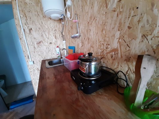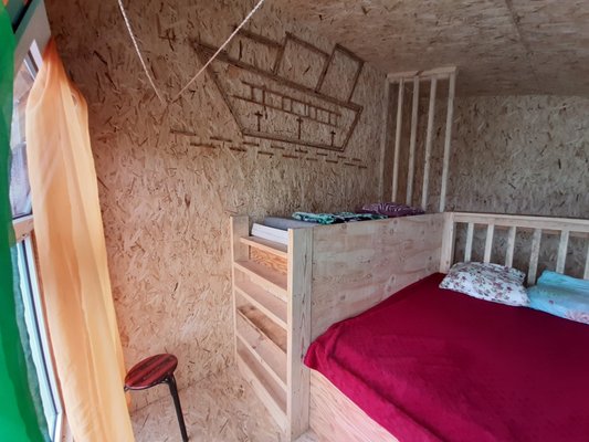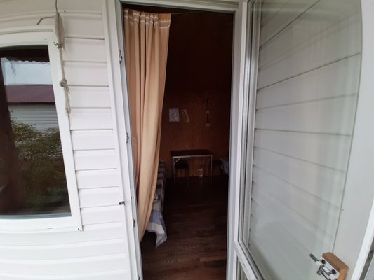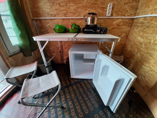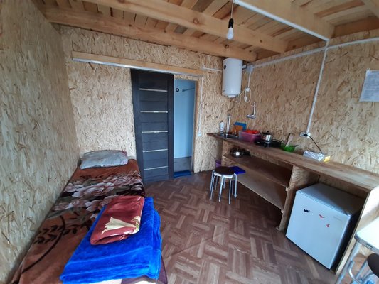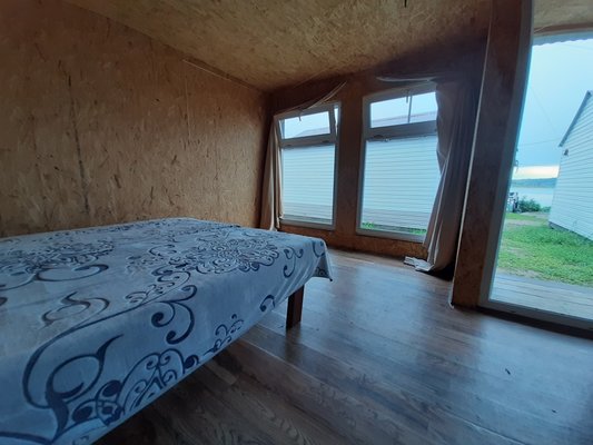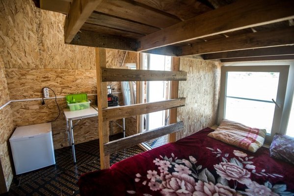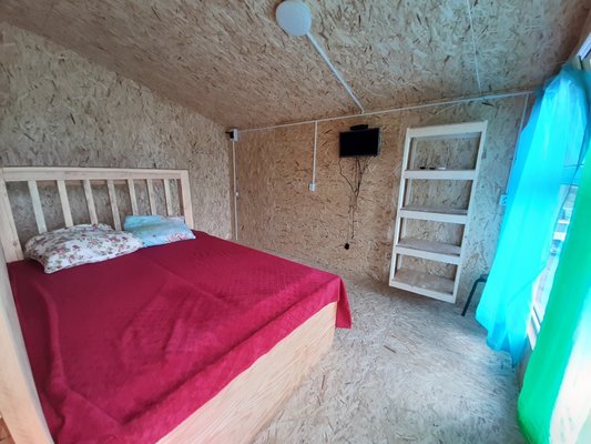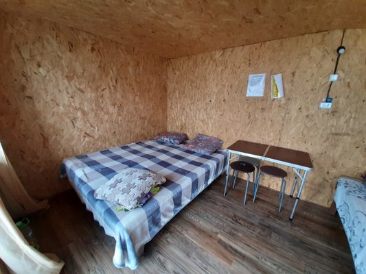 - Проживание в уютном 3-х местном домике, в котором есть всё необходимое (кровати, столы, стулья, подушки, одеяла, розетка).