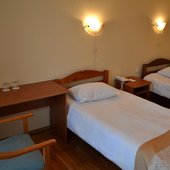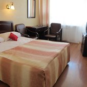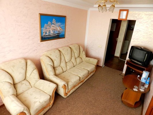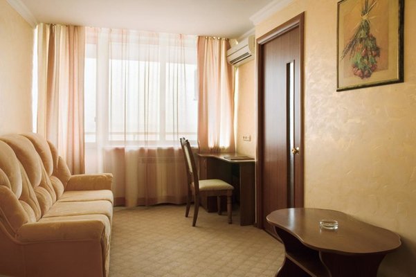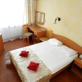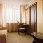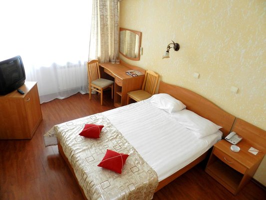 Шестиэтажное современное здание оснащено лифтами, перед главным фасадом имеется небольшая благоустроенная территория. Номерной фонд предлагает отдыхающим двухместные номера категории «Эконом», «Стандарт», «Супериор» и «Люкс», оснащенные бытовой техникой, спальным гарнитуром, санузлом с душем или ванной. Из окон ряда номеров открываются живописные виды на залив.