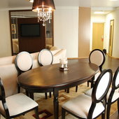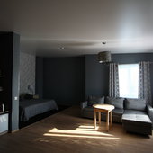 Интерьер, оформленный в современном стиле, свет софитов, удобная зона с мягкими диванами, система кондиционирования помещения – все это создает атмосферу приятного уюта и непринужденности. В то же время зал может быть использован для проведения корпоративных вечеров, фуршетов, торжеств, свадеб, юбилеев.