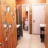 Для проживания предлагаются койко-места в общих номерах для мужчин или женщин. На этаже расположены душевые и санузел.
