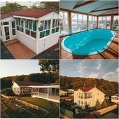 - усадьба c видом на море (обособленная огороженная территория, на которой расположен банкетный павильон с террасой – вмещает до 50-60 гостей, коттедж – вмещает до 16 гостей на ночь, зона барбекю, зоны отдыха, павильон с бассейном) – арендуется для проведения Свадебного Дня;