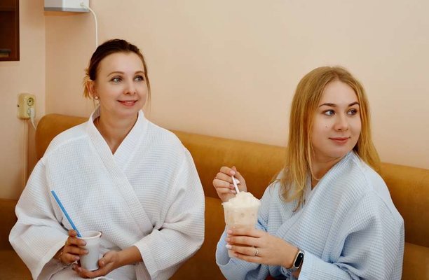 Кухня всегда радует гостей вкусной домашней едой, оригинальными рецептами. Кроме того, есть возможность включать в рацион отдыхающих и пациентов блюда из морепродуктов, насыщенные белками и другими полезными элементами.