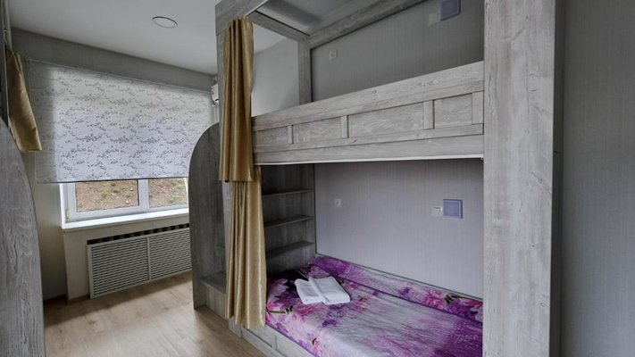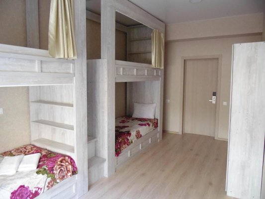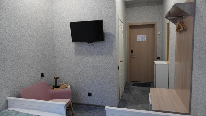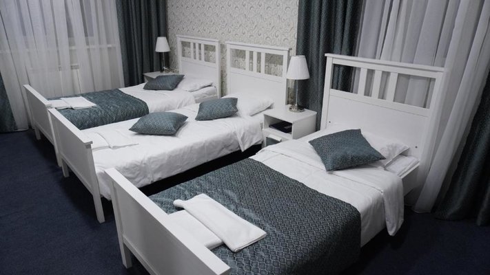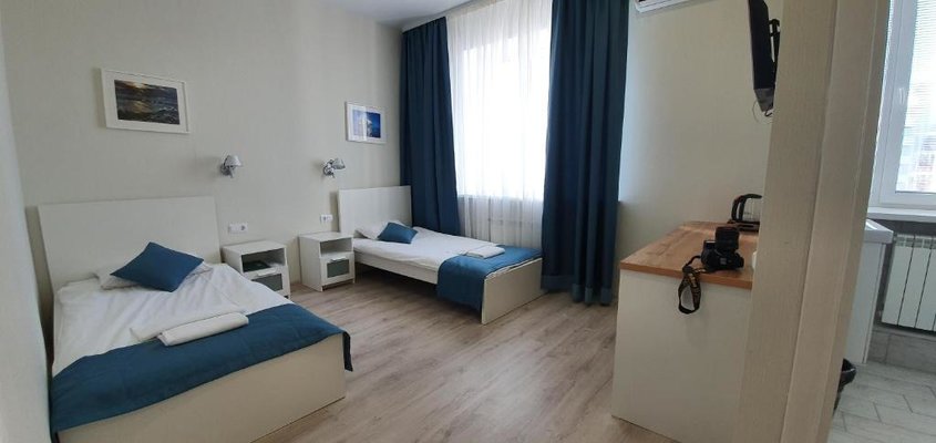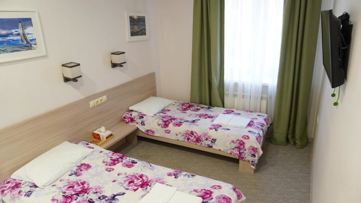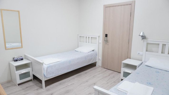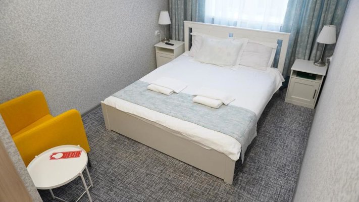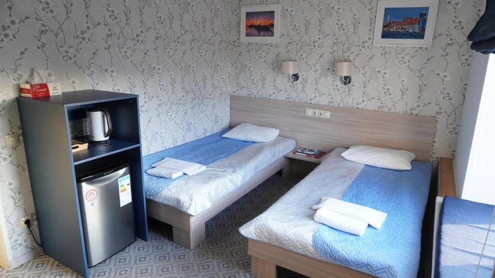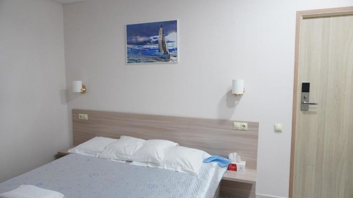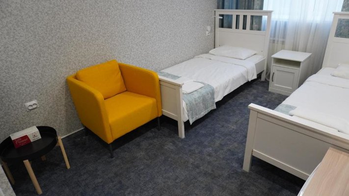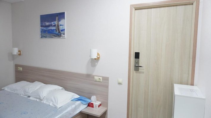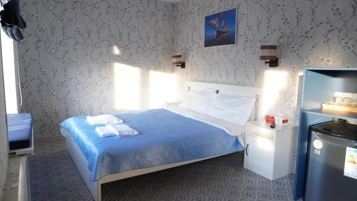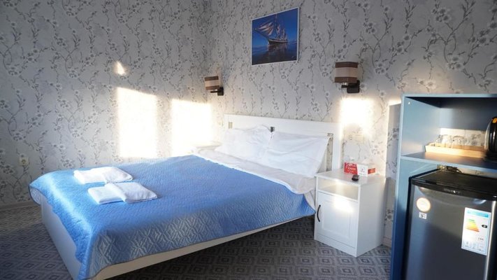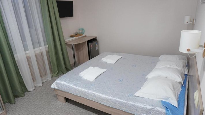 В номерах есть все необходимое для проживания: спальное место, прикроватные тумбочки, ночные светильники, шкаф, телевизор, комплект полотенец на человека. В ванной комнате установлена душевая кабина, туалет и раковина, также есть общая уборная. Питание организовано на территории отеля.