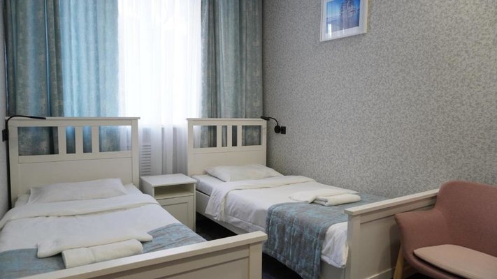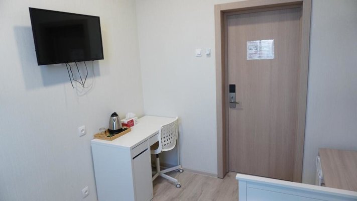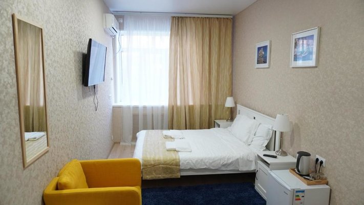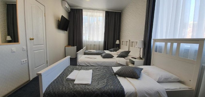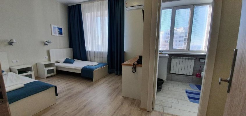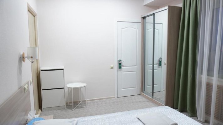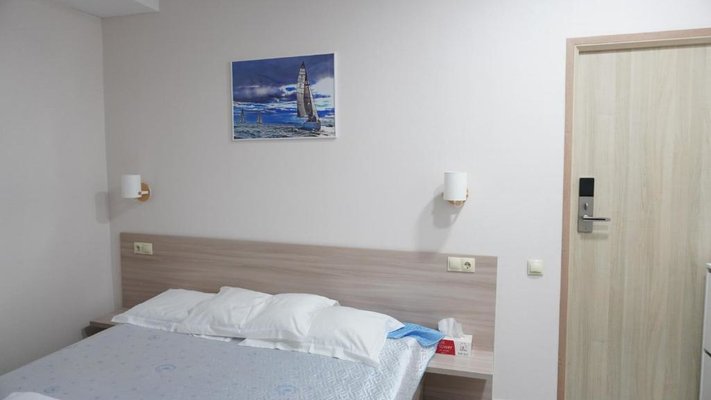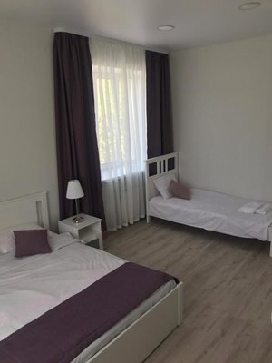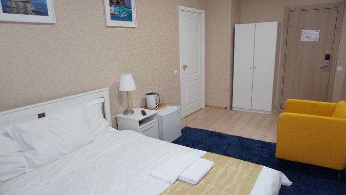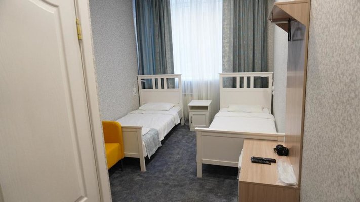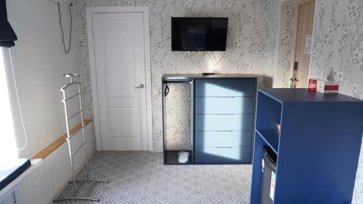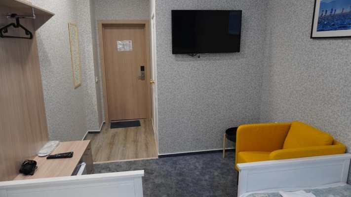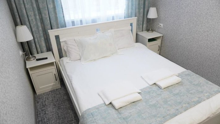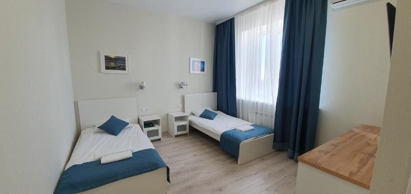 В номерах есть все необходимое для проживания: спальное место, прикроватные тумбочки, ночные светильники, шкаф, телевизор, комплект полотенец на человека. В ванной комнате установлена душевая кабина, туалет и раковина, также есть общая уборная. Питание организовано на территории отеля.