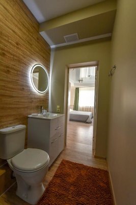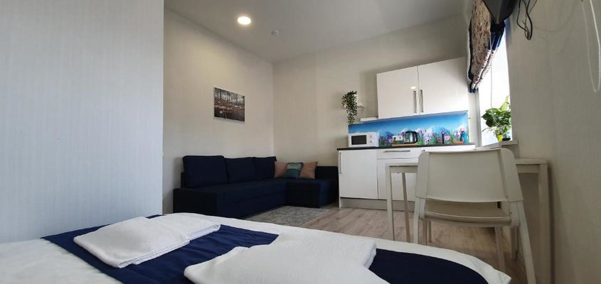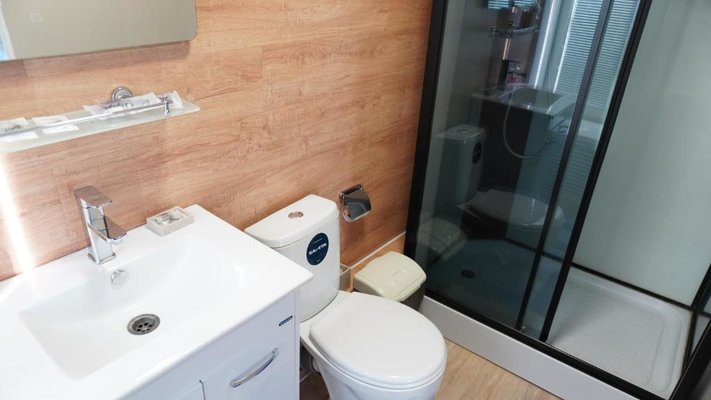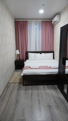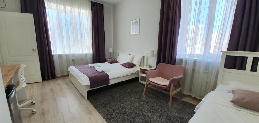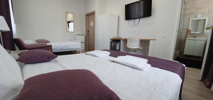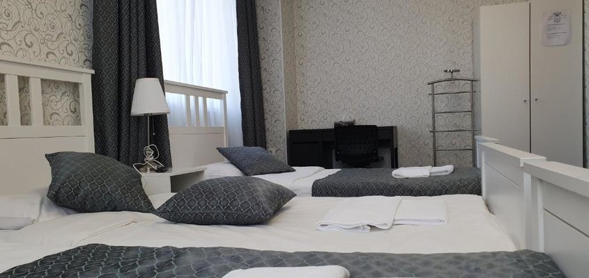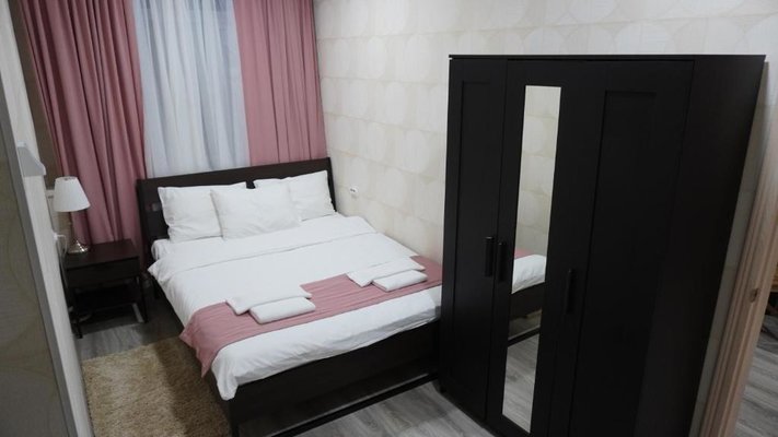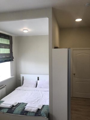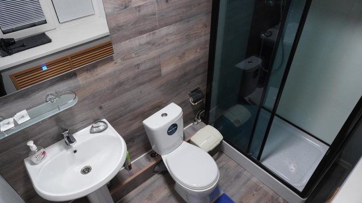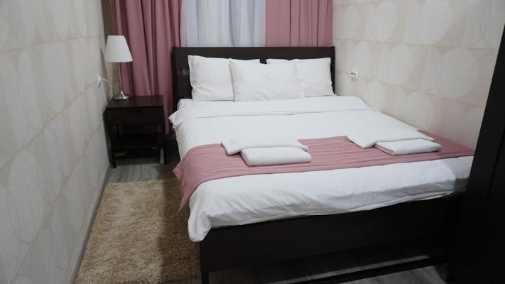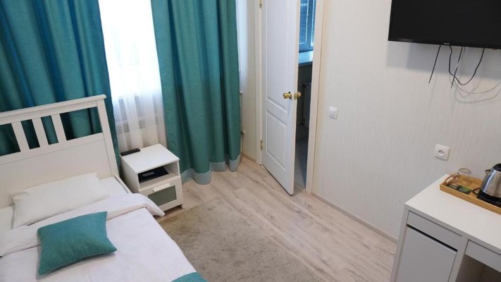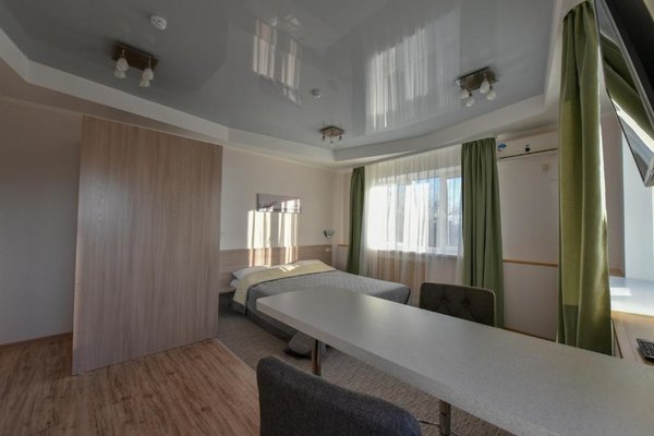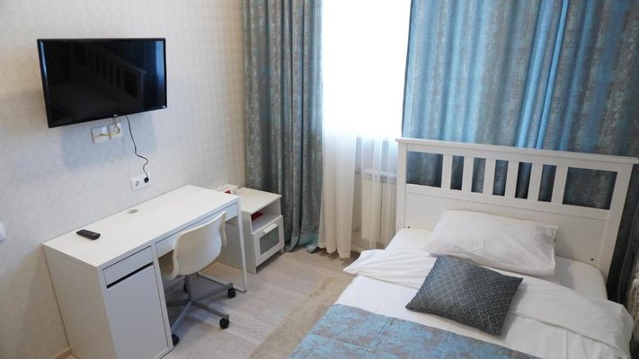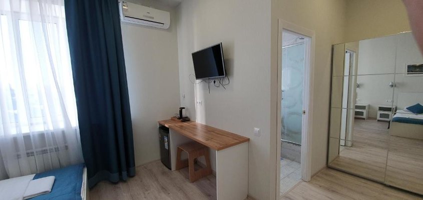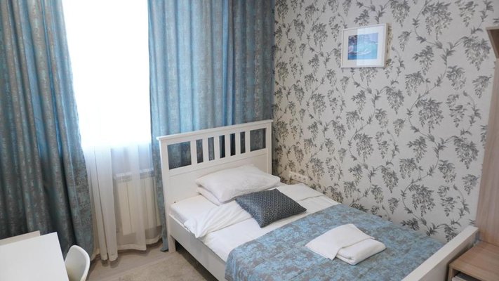 В номерах есть все необходимое для проживания: спальное место, прикроватные тумбочки, ночные светильники, шкаф, телевизор, комплект полотенец на человека. В ванной комнате установлена душевая кабина, туалет и раковина, также есть общая уборная. Питание организовано на территории отеля.