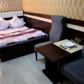 Каждый номер оснащен системой «теплый пол», креслами, телевизором и журнальным столиком.
