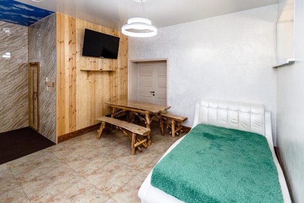 На территории работают мини-маркет и продуктовый магазин. Есть бар.