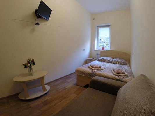 Номерной фонд состоит из 35 уютных номеров, укомплектованных всем необходимым для комфортного проживания, включая общую ванную комнату и телевизор.