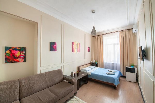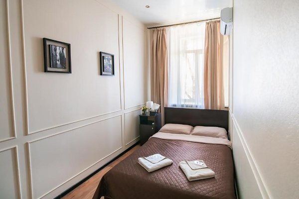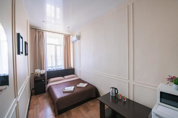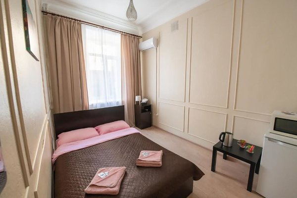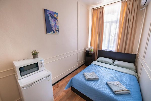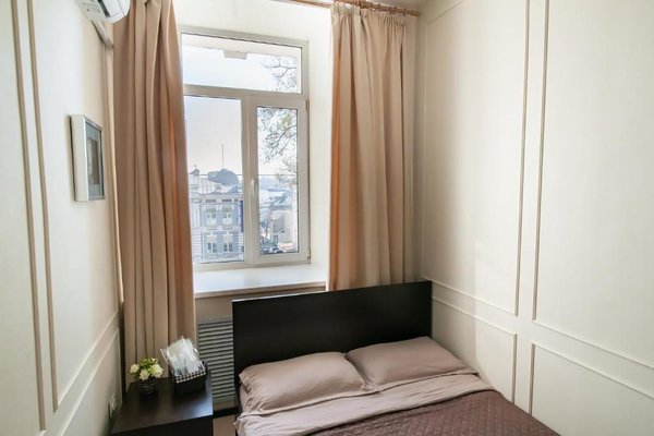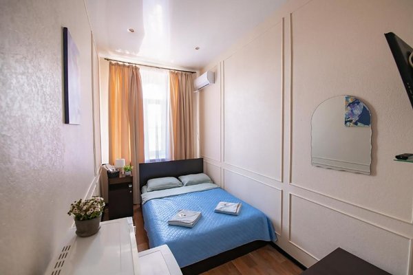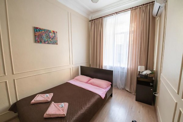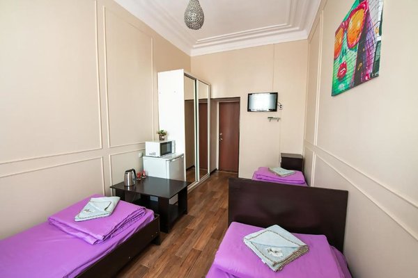 В комнатах имеются двухъярусные кровати, кондиционер, телевизор, осветительные приборы, общая ванная комната с кабинками, душевые с занавесками. Есть номер с отдельной двухспальной кроватью. Окна с видом на город и главную улицу. Бесплатный интернет.