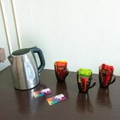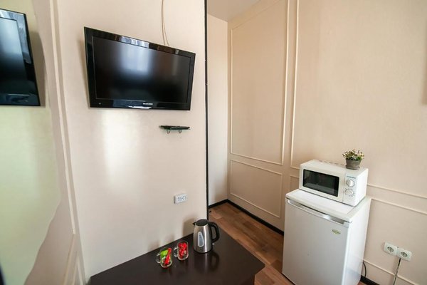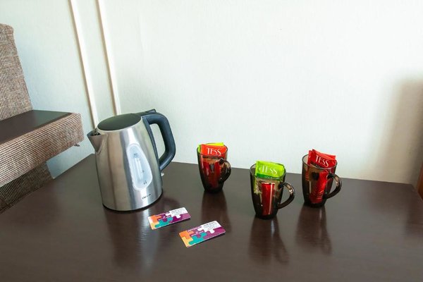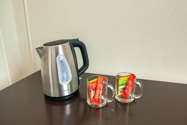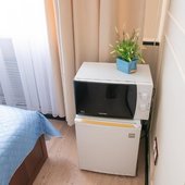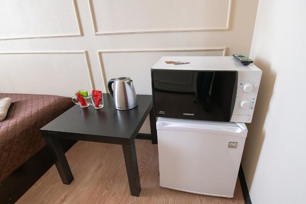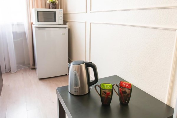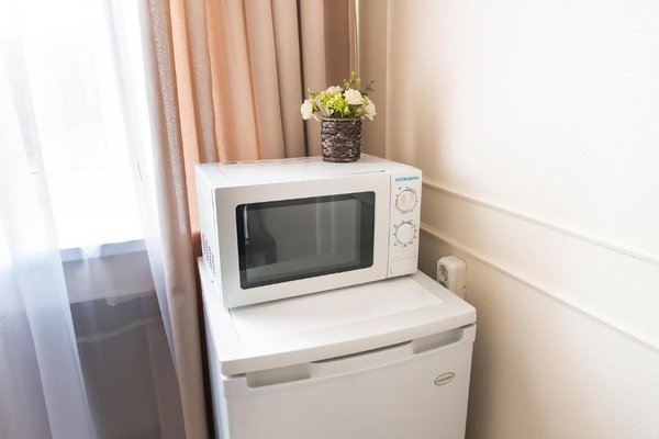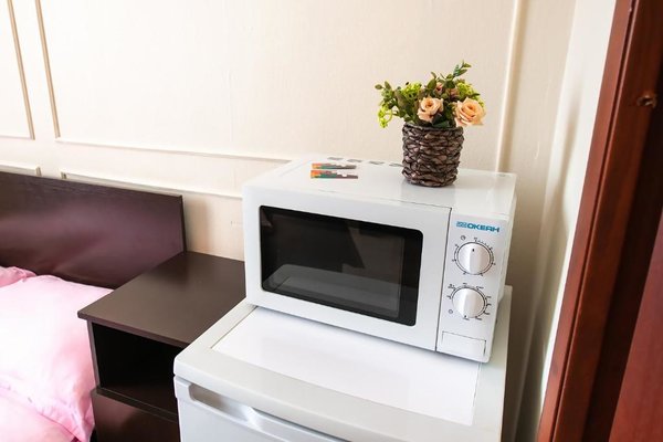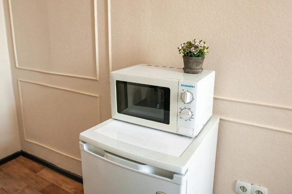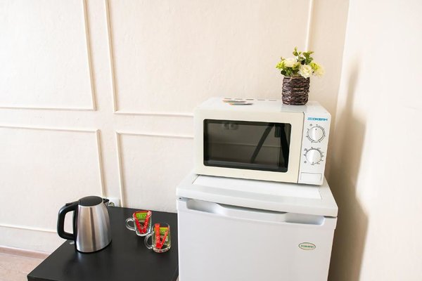Гости готовят самостоятельно на общей кухне с бытовой техникой.