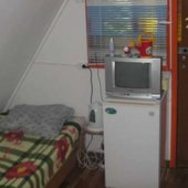 На этой базе отдыхали уже два раза в 2010 году с одной компанией в новом, только построенном домике; Смотрите вход- и сразу кухня, дальше одна большая комната ( мы там поместились 4 взрослых и 3 детей). Стоил домик тогда 5000 руб. в сутки На фото дом- так он на две части делится( наша правая ) Варили сами- вся посуда...