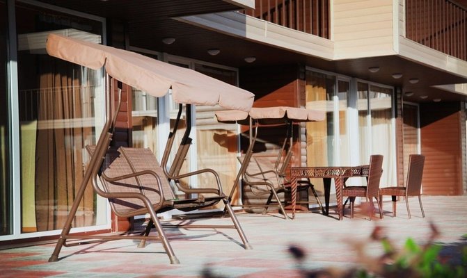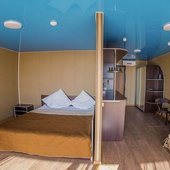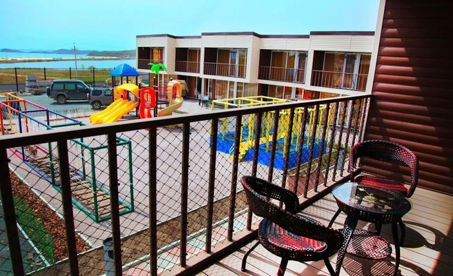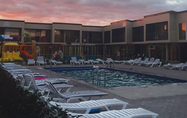 Гостиничный комплекс представляет собой огороженную территорию в 300 метрах от моря (песчаный пляж), на которой расположены 57 комфортных номеров на первом и втором этаже с балконами и панорамными окнами.