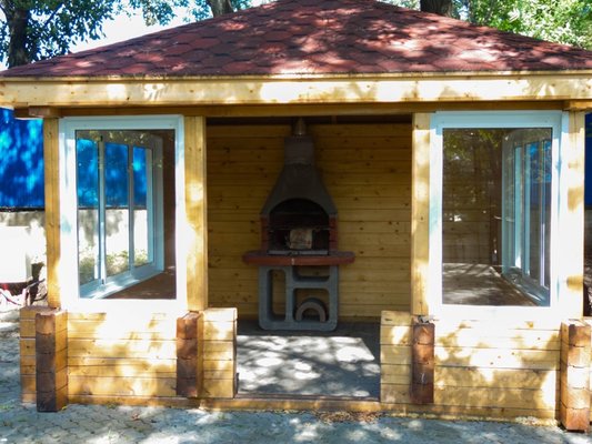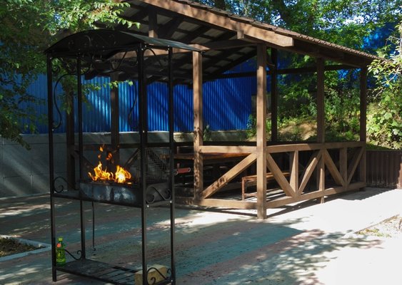 - Беседка большая + (решетка, мангал) 500 руб./час;