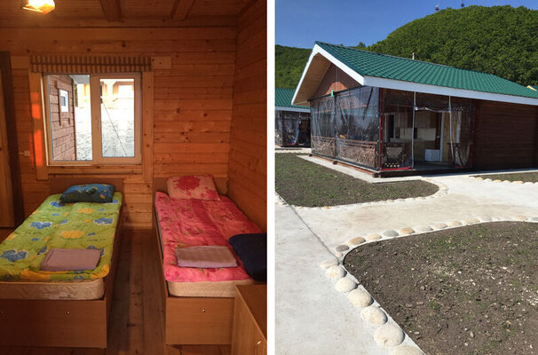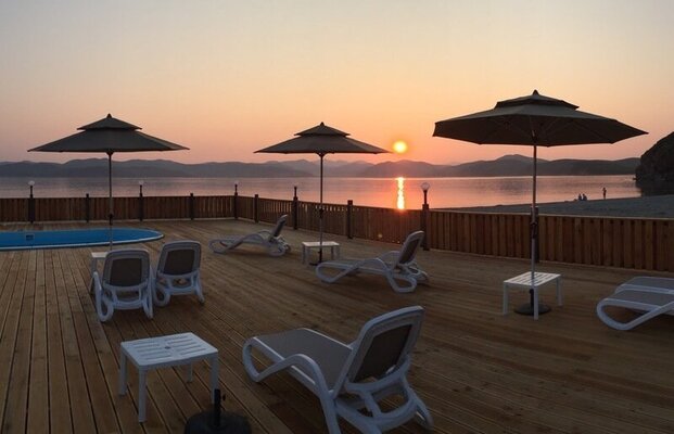 15 комфортабельных коттеджей, срубленных из экологически чистого дерева, расположились на берегу, окутанные зеленью леса с одной стороны и лазурью моря с другой. Выбирайте номер «Стандарт» или «Комфорт» для 3-4 гостей или арендуйте весь коттедж для большой компании.