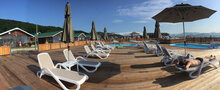 Комплекс включает 3 бассейна с теплой водой и оборудованной зоной отдыха.
