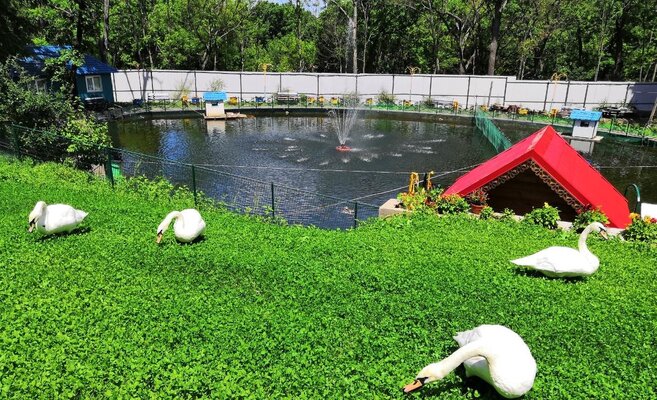 В летнее время для проживающих возводится бассейн с морской водой, предоставляются шезлонги.