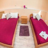 Для приготовления пищи можно воспользоваться общей кухней или заказать еду в номер (услуга оплачивается отдельно). На первом этаже стоит торговый автомат с напитками.