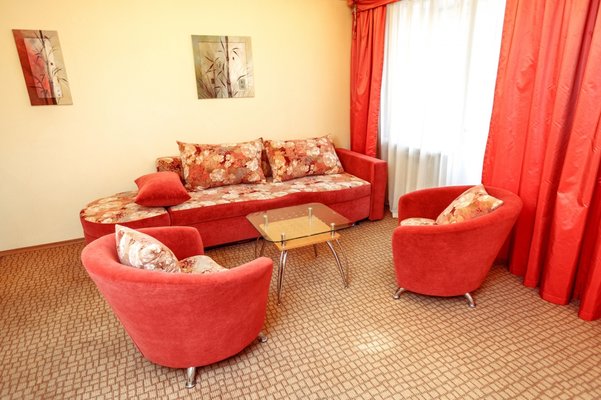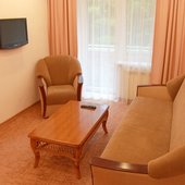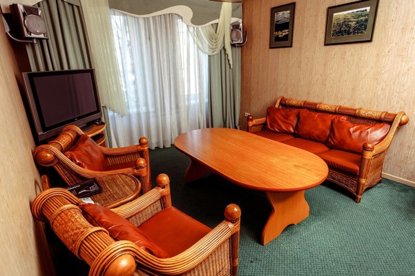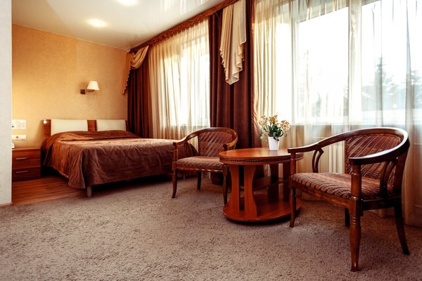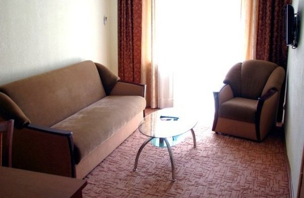 Территорию пансионата разделяют аллеи на зоны, которые образуют небольшие скверы. Вблизи пансионата находится Ботанический Сад. Пансионат имеет в наличии 71 номер.