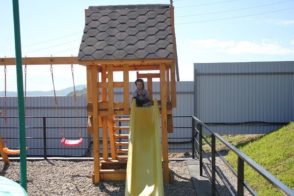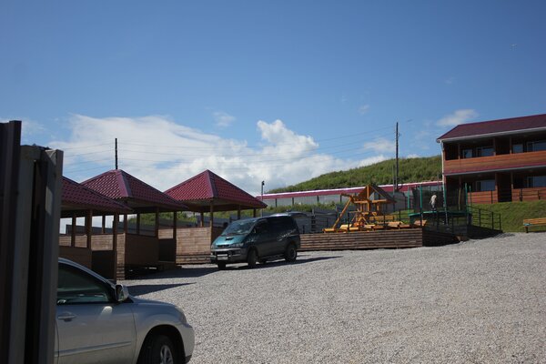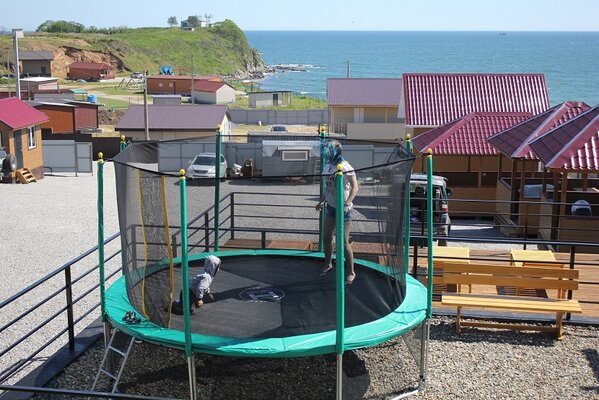 На просторной территории гостевого дома оборудована детская площадка с горкой, качелями и батутом. Для взрослых предусмотрены уютные беседки и мангальные зоны для пикников. Гости, прибывшие на автомобиле, смогут воспользоваться бесплатной парковкой.