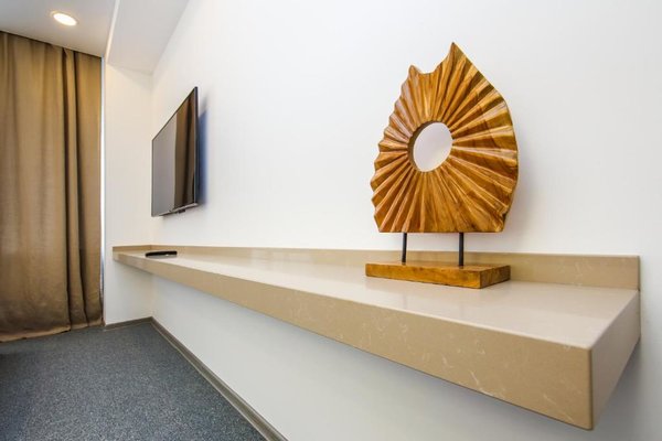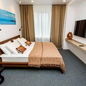 Все номера оснащены кроватью с ортопедическим матрасом, есть так же телевизор и кондиционер.