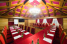 Зал на 40 человек оформлен в строгом официальном стиле. Здесь есть необходимое оборудование для проведения совещаний и деловых переговоров, включая жк-экран.