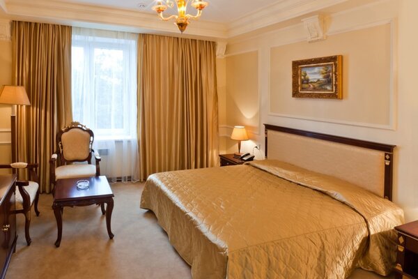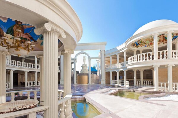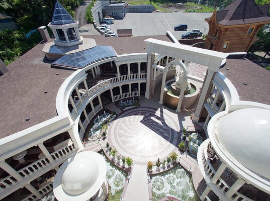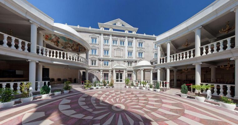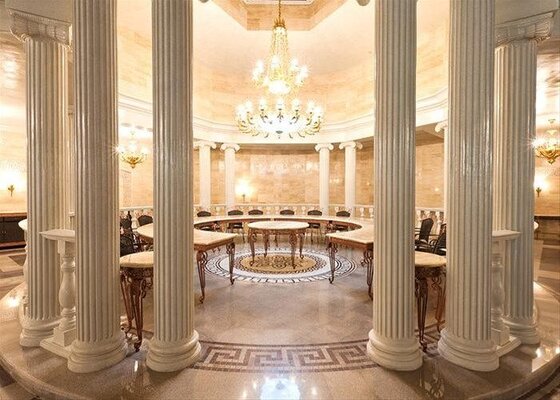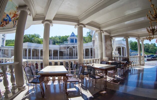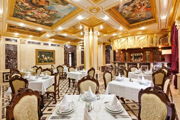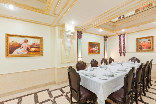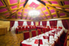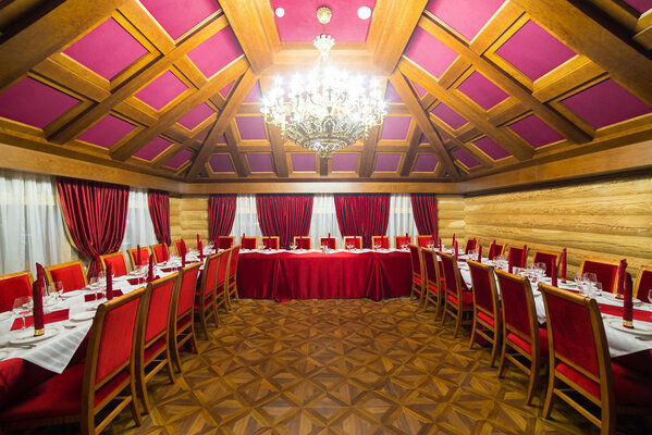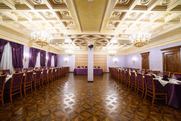 На территории отеля есть много живописных мест для проведения вашего торжества, а внутри — много залов с роскошным интерьером. Отель предоставляет банкетные залы, рассчитанные на количество гостей от 30 до 400 человек. В теплое время года — это может быть двухэтажная открытая терраса. Залы будут оформлены индивидуально, исходя из ваших предпочтений. В зависимости от вашего желания можно оформить и классический банкет, и фуршетный стол.
