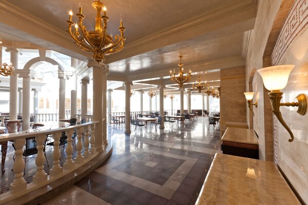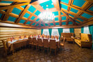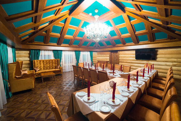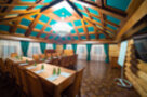 Ресторан выдержан в старорусском стиле: бревенчатые стены и сводчатые потолки сочетаются здесь с богатым внутренним убранством, обилием света и воздуха, изысканным дубовым паркетом и удобной современной мебелью.