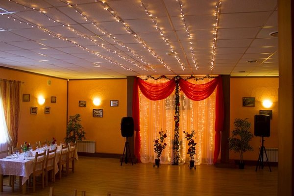 На базе отдыха имеется банкетный зал, где можно провести: корпортатив, юбилей, свадьбу или выпускной.