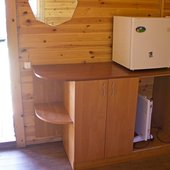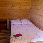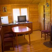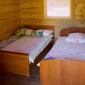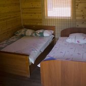 - 8 уютных деревянных двухместных домиков «Эконом», в каждом домике имеется 2 кровати, стол, стулья, тумбочки, холодильник (туалет и душ в отдельном здании);