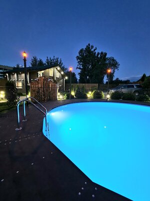 Бассейн с подогревом и большая зона барбекю со столиками!