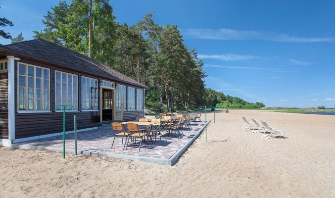Панорамное кафе на берегу Псковского озера. Вместимость до 40 человек. Освещение, инфракрасные потолочные обогреватели, большой холодильник. Санузел с холодной и горячей водой находится в 5 м от кафе. Перед кафе 60 м площадка для танцев и др. мероприятий.