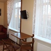 Минимализм в номере. Отсутствие телевизора, холодильника, душа. Ужасная звукоизоляция. Отличная слышимость происходящего в соседних номерах и коридоре. Грязные занавески.