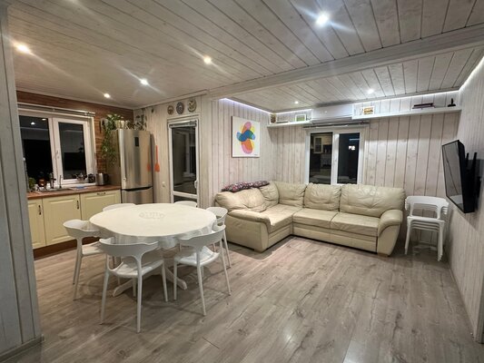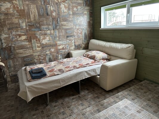 Частный дом предлагает баню «Звездное небо», где можно париться без ограничений по времени. В комнате отдыха есть барная стойка, телевизор и диван. Парная оснащена каменкой из сибирского жадеита.