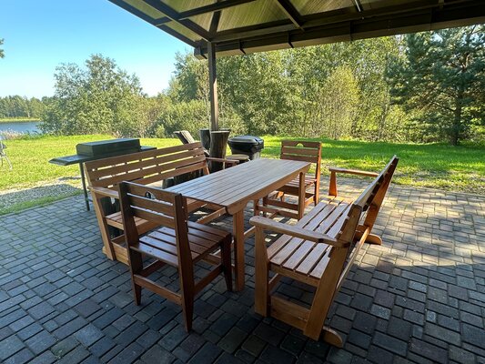 Рядом с домом расположена просторная поляна с воротами для мини‑футбола — идеальное место для активных игр на свежем воздухе. Гости могут устроить дружеский матч и тренироваться, не покидая территории.