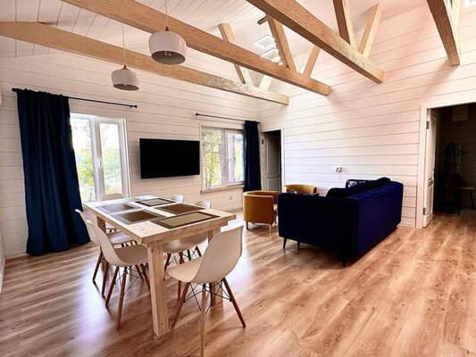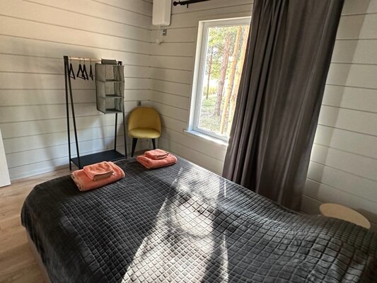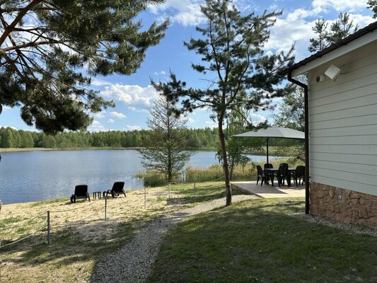 Этот светлый одноэтажный деревянный дом идеально подходит для размещения до 6 гостей. В вашем распоряжении две отдельные спальни, просторная кухня-гостиная и два санузла. Коттедж полностью оборудован современной техникой и мебелью, включая кондиционер, стиральную и посудомоечную машины, фен, утюг, телевизор, холодильник и плиту. Из каждого окна открывается прекрасный вид на водную гладь озера.