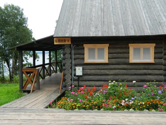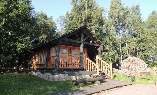 Открытая беседка на 10-15 человек. Расположена у малой бани, недалеко от берега озера. В аренду входит уголь, мангал и шампуры в комплекте.