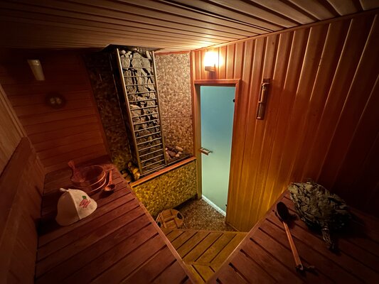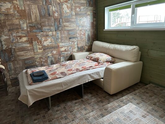 Заселение осуществляется бесконтактно. К вашим услугам обширная территория в 60 соток, утопающая в зелени ухоженного газона. Здесь вы найдёте: традиционную баню на дровах, просторную крытую мангальную зону с полным оснащением, игровую площадку для детей, а зимой — собственный склон для весёлых спусков на санках. Предусмотрена большая парковка, а в тёплое время года — собственный пирс для купания и лежаки для солнечных ванн.