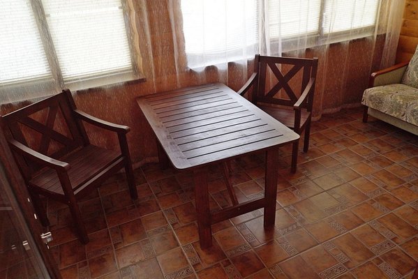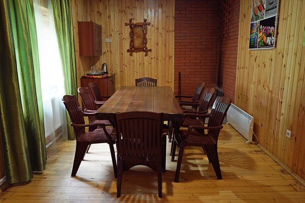 На территории располагается просторная беседка из сруба, рассчитанная на размещение до пятидесяти человек — идеальное место для дружеских встреч и корпоративных мероприятий.