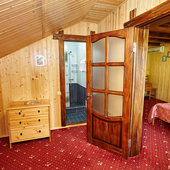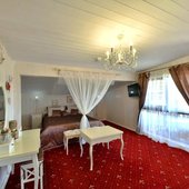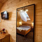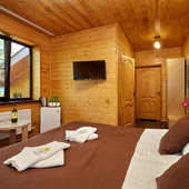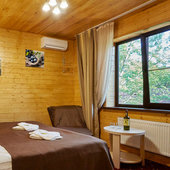 «Даховская Слобода» предлагает гостям 51 уютных и экологичных номера с видом на горы. В каждом номере вас ожидает удобная и функциональная мебель, современный санузел, сплит-система, холодильник, фен и, конечно же, идеальный порядок. Ежедневная уборка и смена постельного белья раз в 3 суток. В стоимость всех номеров уже включен завтрак «шведский стол». Номерной фонд позволяет разместить единовременно более 150 гостей.