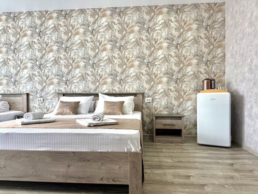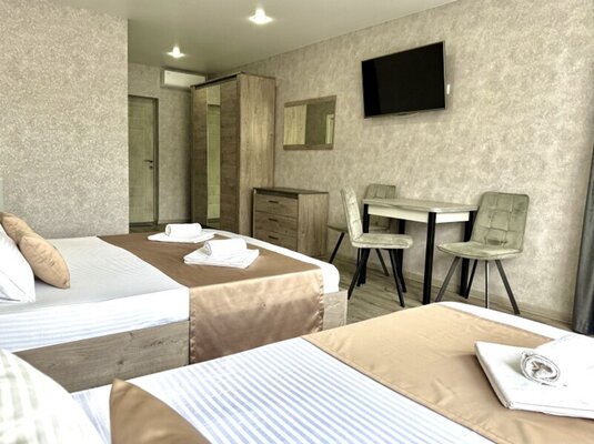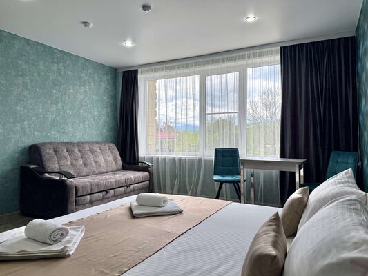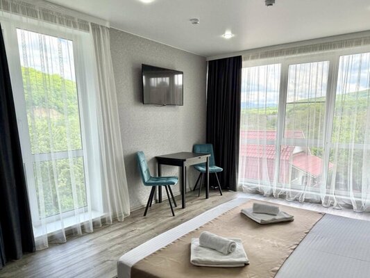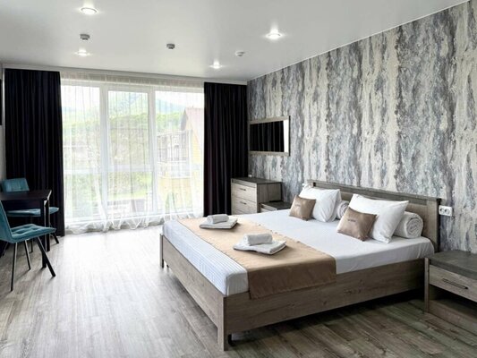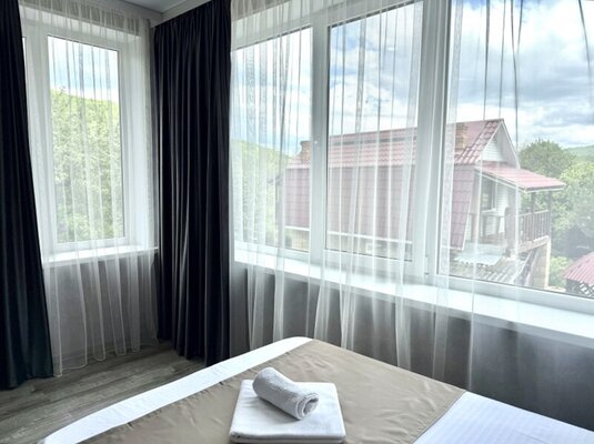 К вашим услугам просторные и комфортабельные номера, оформленные с любовью к деталям. В каждом номере есть все необходимое для полноценного отдыха: кондиционер, современная мебель и качественный текстиль. Начните день с вкусного завтрака, который можно насладиться в уютной обеденной зоне или на свежем воздухе. А после активных прогулок расслабьтесь в русской бане на дровах или хамаме. Для любителей пикников предусмотрены мангальные зоны и летняя терраса, а для удобства гостей – бесплатная парковка.