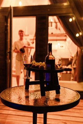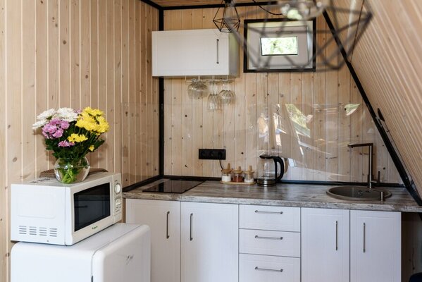 В вашем распоряжении: современная ванная комната (душ, туалет, фен, подсветка зеркала, гигиенические принадлежности), телевизор, полностью оборудованная кухня (электрическая плита, холодильник, микроволновая печь, посуда) и просторная терраса со столиком и стульями. К вашим услугам также собственный бассейн с подогревом и мангал (доступ с террасы), а также парковка на территории.